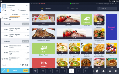 Durch einen längeren Druck auf die Taste "Versenden“ oder „Zahlung", werden sofort alle möglichen Interaktionen mit der Bestellung in ihrem aktuellen Zustand gezeigt, wie z. B. die Übertragung der Bestellung auf einen anderen Tisch, die Teilung der Bestellung durch die Wahl von Waren oder nach dem Wert, oder die Schließung eines Teils der Bestellung und das Verlassen des offenen Tisches.